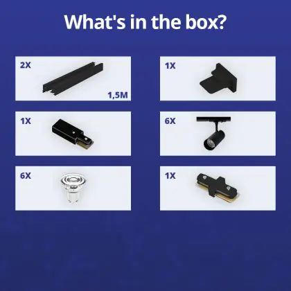 Complete Set 1-Fase Rail 3 Meter Zwart | incl. 6x Spot + GU10 2700K 3W Dimbaar + Eindkap, Voedingsconnector en I-Verbindingsstuk