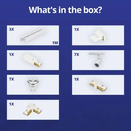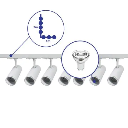 Complete Set 1-Fase Rail L 1 x 2 Meter Wit | incl. 7x Spot + GU10 2700K 3W Dimbaar + Eindkap, Voedingsconnector en L -Verbindingsstuk