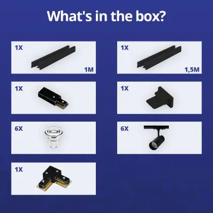 Complete Set 1-Fase Rail L 1x 1,5 Meter Zwart | incl. 6x Spot + GU10 2700K 3W Dimbaar + Eindkap, Voedingsconnector en L -Verbindingsstuk