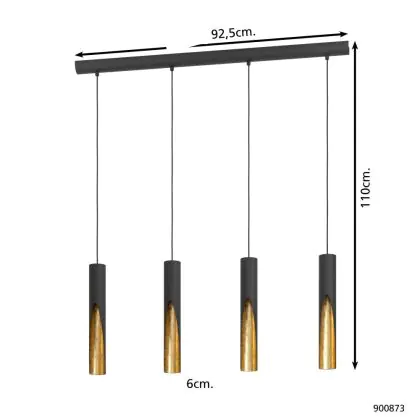 Eglo Pendelarmatuur Barbotto Staal Zwart, Goud 18W 1380lm - 830 Warm Wit | Geschikt voor GU10