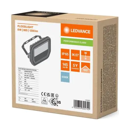 Ledvance LED Breedstraler Aluminium Zwart 8W 1200lm 100D - 865 Daglicht | IP66 - Symmetrisch