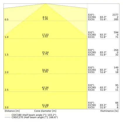 De lichtopbrengst (Lumen), geeft weer hoe krachtig het uitgestraalde licht is. Dit is belangrijk om te weten om de juiste sfeer te creëren. 0 tot 400 Lumen is bij uitstek geschikt voor accent- of sfeerverlichting. Een hoger aantal Lumen is, afhankelijk van de grootte van de ruimte, beter geschikt als ondersteunende- of basisverlichting. Heb je plafonds hoger dan 4 meter, dan is een lichtopbrengst van minimaal 8000lm aan te raden indien heldere verliching gewenst is (vb. in werkomgevingen).