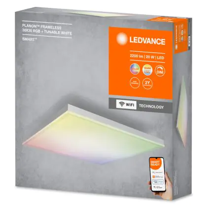 Ledvance LED Paneel Smart+ Planon Zonder frame 20W 1500lm - 830-865 Afstembaar Wit + RGB | 30x30cm - UGR <25 - Wifi Dimbaar