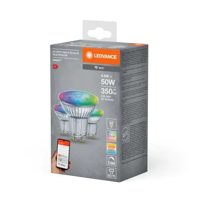 Ledvance Smart+ Wifi GU10 Spot 5W 350lm 45D - 827-865 Afstembaar Wit | RGBW - Dimbaar - Vervangt 50W