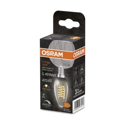 Osram Vintage 1906 LED Classic Slim E14 Kaars Filament Helder 4.8W 470lm - 827 Zeer Warm Wit | Dimbaar - Vervangt 40W
